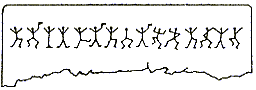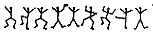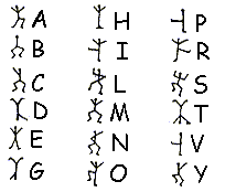 - Trois jours plus tard, un message griffonné sur du papier était glissé sous un caillou sur le cadran solaire. Le voici. Les dessins, comme vous le constatez, sont exactement les mêmes que sur le précédent. [...] En effet, la même configuration de figurines dansantes apparue à deux reprises et que j'avais déjà recopiée se trouvait sur la porte. J'inspectai les alentours sans découvrir la moindre trace de cet homme. Et pourtant, si incroyable que cela paraisse, il avait dû être là tout le temps puisque, lorsque j'examinai de nouveau la porte le lendemain matin, il avait griffonné d'autres dessins sous la ligne que j'avais déjà vue. - Avez-vous ce nouveau dessin?