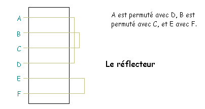 - Le réflecteur : Au bout des 3 rotors se situe une dernière permutation qui permet de revenir en arrière.