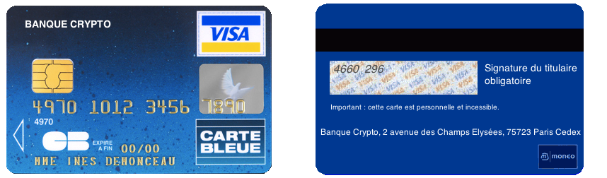 - diverses informations et sigles (nom de la banque, visa ou mastercard,…);