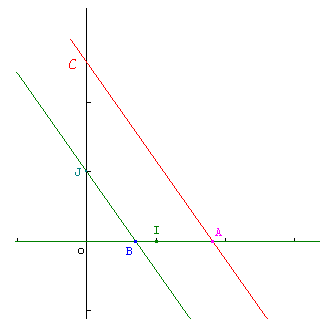 On considère le point $A (a,0),$ et $B(0,b).$ On trace la parallèle à $(BI)$ passant par $A,$ qui coupe l'axe des ordonnées en $C.$ D'après le théorème de Thalès, $OC/OB=OA/OI,$ ce qui donne $OC=ab.$