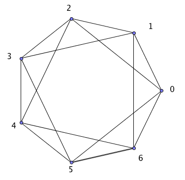 Exemple : Voici le graphe de Cayley de $\mathbb Z/7\mathbb Z$ avec $S=\{1,2,5,6\}$ :