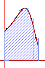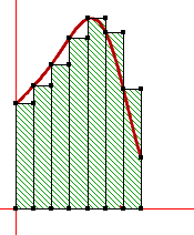 Géométriquement, cela signifie qu'on approche l'intégrale de f par l'aire des rectangles hachurés en rouge :