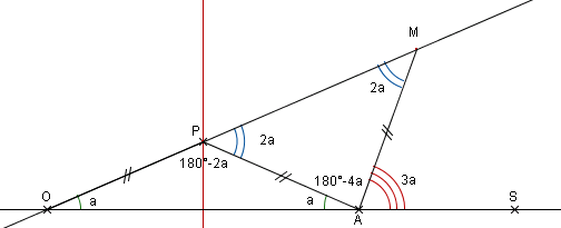 Le nom de trisectrice vient que, dans la deuxième définition, l'angle $\widehat{SOM}$ est le tiers de l'angle $\widehat{SAM},$ comme on peut le lire sur la figure suivante.