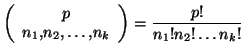 où la sommation est étendue à l'ensemble des suites (n1,...,nk) d'entiers satisfaisant :