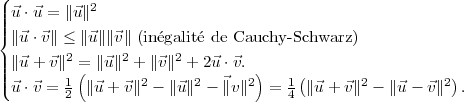 - Déterminant et norme : $$\det(\vec u,\vec v)^2+(\vec u\cdot \vec v)^2=\|\vec u\|^2\times \|\vec v\|^2.$$