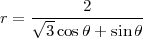 $$r=\frac 2{\sqrt 3\cos\theta+\sin\theta}\iff \sqrt 3r\cos \theta+r\sin\theta=2\iff \sqrt 3 x+y=2.$$