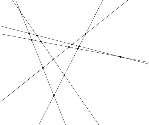En fait, si l'on prend 6 droites, 2 à 2 non parallèles, et qui ne se coupent jamais à 3 ou plus en un même point,