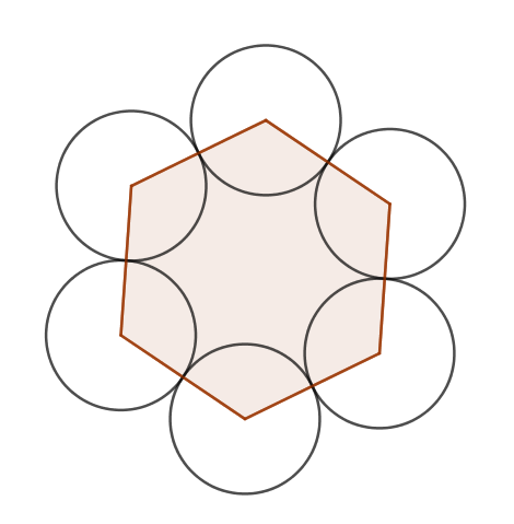 Il suffit de les placer tangentes deux à deux en hexagone comme sur le dessin ci-dessus.