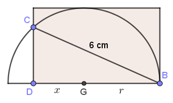 On note aussi $r$ le rayon du demi-cercle et $x$ la distance $GD$. On remarque que l'aire du rectangle est $r\times (r+x)$.